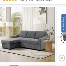 ποΈ Coddle Aria Fabric Sleeper Sofa with Reversible Chaise & Storage β Gray$550Houston, TX