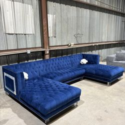 Beautiful Velvet Blue Tufted Sectional Couch Delivery Available $550Houston, TX