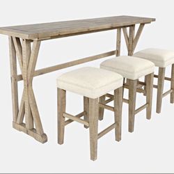 JOFRAN - CARLYLE CROSSING SOLID PINE COUNTER HEIGHT SOFA TABLE SET WITH THREE STOOLS - DISTRESSED LIGHT BROWN$375Spring, TX