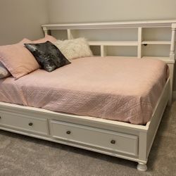 White Full Size Bed Frame With Shelving and Storage$600Conroe, TX