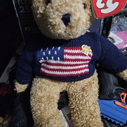 1990 TY Classic CURLY the Bear "She's A Grand Old Flag!" (Large Heart Tag) 16"