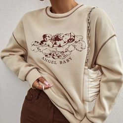 Angel Baby Sweatshirt Beige - Vintage Y2K Aesthetic Cherub Pullover Size XS$10Houston, TX
