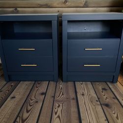 Large Bedroom Nightstands End Tables Solid Wood Dark Blue Satin New$290Humble, TX