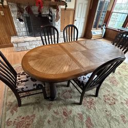 Wood Table Stained Top- Brown Bottom Comes with 5 Brown Cowhide Print Chairs $700Waller, TX