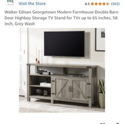 TV Stand. Walker Edison Georgetown Modern Farmhouse Double Barn Door Highboy Storage TV Stand Up To 65inches Grey Wash$135Houston, TX
