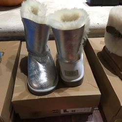 Girls Silver Metallic UGG Boots Size 13$70Spring, TX