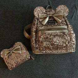 Rose Gold Sparkly Mickey Bag + Wallet, Disney $35Spring, TX
