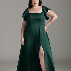 Brand New Azazie Bondi Emerald A-Line Bow Stretch Satin Dress from Azazie$100Spring, TX