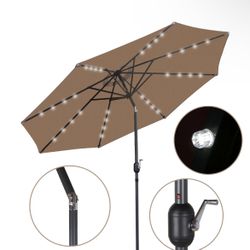 10FT Patio Solar Umbrella LED Patio Market Steel Tilt And Crank Outdoor Tan - NEW$99Conroe, TX