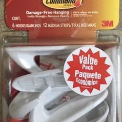 New ! 3M Command 6 Hooks 12 Strips Medium Sized Utility Hooks Value Pack White.$10Cypress, TX