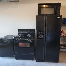 Whirlpool black set fridge, stove, dishwasher & microwave$800Spring, TX