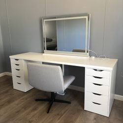 Vanity Desk with Lighted Mirror & Charging Station & 3 Drawers & RGB Cabinet, Makeup Vanity Table with LED Mirror & Full-Length Mirror, White & Gold$200Houston, TX