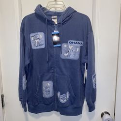 Brand new with tags Disney Stitch Hoodie Womens Blue Full Zip Sweatshirt Ohana Graphics size large $20Corpus Christi, TX