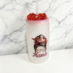 Mother's Day Glass Tumblers with Lid & Straw, Heart Pattern, Pink, 16oz$15Corp Christi, TX