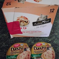 Fussie Cat Wet Food 12 Pouches In Box And Two Dashi Delights Wet Food $10Corp Christi, TX