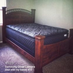 Complete Hardwood Bed Set With Queen Size Mattress And Box Spring$400Corp Christi, TX
