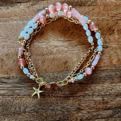 Turquoise Pearl Gold Sea Star Bracelet$18Rockport, TX