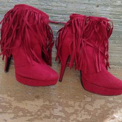 Red Suede Fringed Booties$25Corpus Christi, Texas
