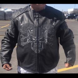 Leather riding jacket with reflective skulls concealed carry jacket$250Corp Christi, TX