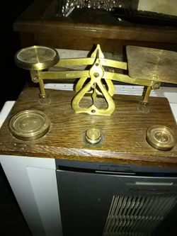 Vintage Balance Scale Brass Pans and Weights Wood Base English Made$45Corpus Christi, TX