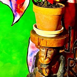 Wood Carved Monkey Plant Stand Stool? Animals Wildlife VTG Rare Baby Monkey$250Robstown, TX