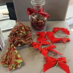 Decorative Glass Jar with Dried Flowers, Red Ribbon, Bows, and Glitter$23Arlington, TX