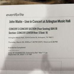 John Waite Concert 3/26 Arlington TX$250Addison, TX