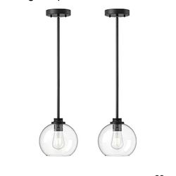 3752: New Modern Pendant Lights Kitchen Island 2 Pack, Hanging Light Fixture with Clear Glass Globe Shade, Hardwired Matte Black Adjustable Metal Rod $45Dallas, TX