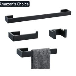 0086: New 4 Pieces Bathroom Hardware Accessories Set Black Towel Bar Towel Holder Robe Hook Toilet Paper Holder Stainless Steel$30Red Oak, TX
