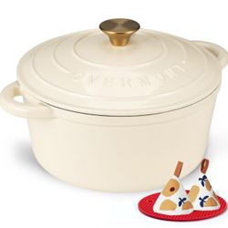 Overmont Enameled Cast Iron Dutch Oven - 7QT Pot with Lid, Cream White $40Garland, TX