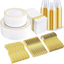 350Pcs Gold Dinnerware Set for 50 Guests, Gold Plastic Plates for Party$30Garland, TX