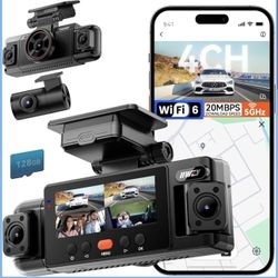 360° Dash Cam 4 Channel, 5.8G WiFi-6 (up to 20MB/s) with App, Free 128GB Card, FHD Front & Rear Inside Dash Cam for Car, 8 IR Lights Night Vision, GPS$119Mckinney, TX