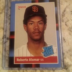 1988 Donruss baseball card featuring Roberto Alomar from the San Diego Padres. #34 The The Baseball Card Was Cut When It Was Man-made By The Manufactu$150Irving, TX