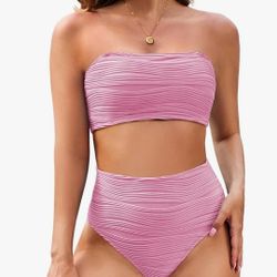 Pink Queen Women Bikini Set 2025 Removable Strap Textured Two Piece Swimsuits High Cut Bathing Suits, LARGE$25Red Oak, TX