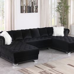 New/ Black Velvet Double Chaise Sectional $2,500Dallas, TX