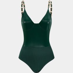Large Micas Faux Leather Bodysuit & pencil Rushed Skirt In Jade$60Addison, TX