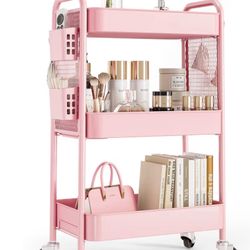 TOOLF 3 Tier Rolling Cart Storage Organizer, Metal Rolling Utility Cart with Wheels, Hooks & Bins Esthetician Craft Art Sturdy Storage with Pegboard f$30Garland, TX