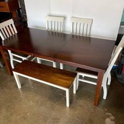 6-PC DINING SET (TABLE WITH EXTENSION LEAF, BENCH AND 4 WIDE SEAT CHAIRS)$290Dallas, TX