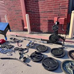 Gym equipment, tko plates, iron plates dumbbells, barbell bar, step, plate stand$440Carrollton, TX