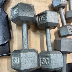 30lb pair cast iron hex dumbbells$55Plano, TX