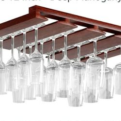 2387: New Rustic State Eze 4 Sectional Under Cabinet Mount Wood Stemware Rack Hanging Shelf Glassware Holder Bar Organizer with up to 12 Wine Glass$20Lancaster, TX