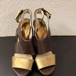 Michael Kors Leather Platform 5 Inch Heels In Brown and Gold Size 9 Pre-Owned$20Euless, TX