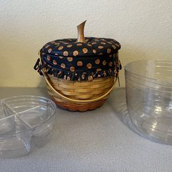 Longaberger 1997 Hostess Large Pumpkin Basket Lid Fabric Liner 2 Plastic Protectors $100Mckinney, TX