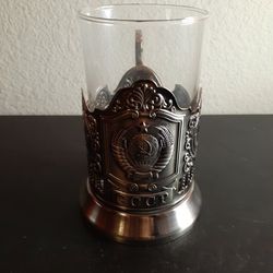 RARE GORGEOUS VTG Russian Crest CCCP Ornate Pewter 5" Tea Glass Holder$50Plano, TX