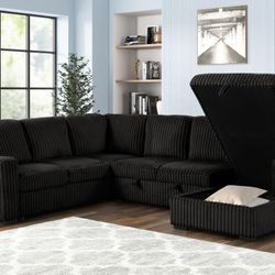 BLACK SUPER SOFT CORDUROY SLEEPER U SECTIONAL WITH STORAGE CHAISE COUCH SET $1,100Dallas, TX