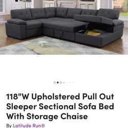 118” W Upholstered Pull Out Sleeper Sectional Sofa Bed W Storage Chaise$700Rockwall, TX