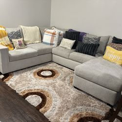 Gray L Shape Couch Right Facing Chaise & Ottoman β
