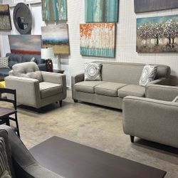 Gray Living Room Sofa Set – Couch, Chair & Ottoman$650Haltom City, TX