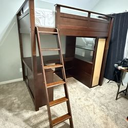 Pottery Barn Dark Wood Full Size Loft Bed with Built-In Desk, Shelving & Storage$350Mansfield, TX