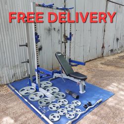 Pro HR600 Fitness Gear Squat rack / gym / gymnasio / Olympic Weight Plates / pesas / bench press / Power Rack / Fitness / EZ Curl Bar $950Dallas, TX